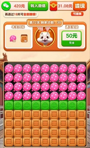 这个游戏是支持提现的,新手刚开始玩个一两关就能拿到差不多0.3元的红包,之后每通过一关,能获得的红包奖励大概在2到4元左右。游戏里的红包提现是按照一定百分比来计算的,而通过闯关可以提升这个提现比例,通过的关卡数量越多,对应的提现比例就会越高。