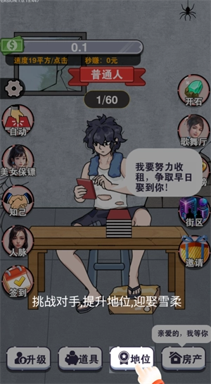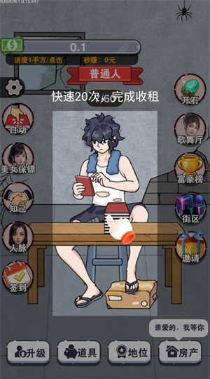 1、改变命运:玩家从一个穷小子开始,逐步通过收租赚钱来改变自己的命运。