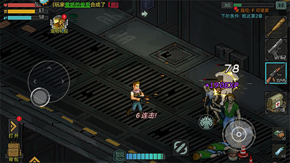 7、点击左下角的【背包】按钮,就能查看并使用当前拥有的药品、装备、子弹等物品。