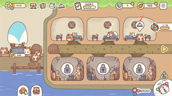 1、玩家可点击仓鼠头顶的小气泡来选择所需服务,服务结束后会掉落坚果。