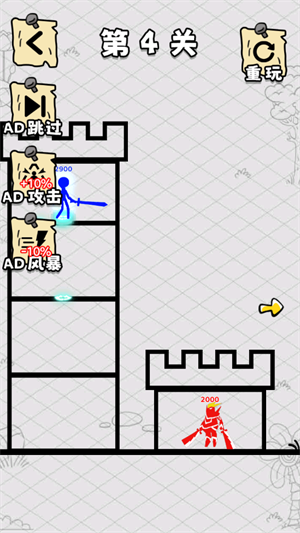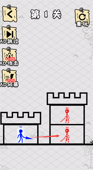 1、拖动你的火柴人,将其移动到数字比自身数字小的敌人位置上