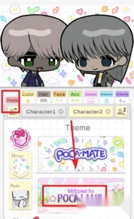 1、在软件界面找到【theme】选项并点击,随后选择【POCALAND】。
