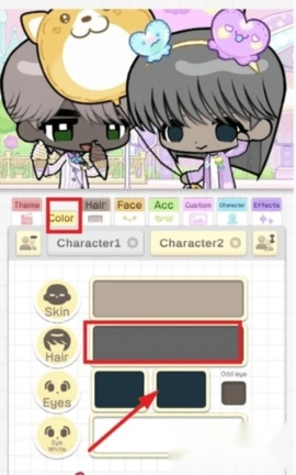 2、接着点击【color】选项,对角色的皮肤、头发和眼睛的颜色进行自定义设置。