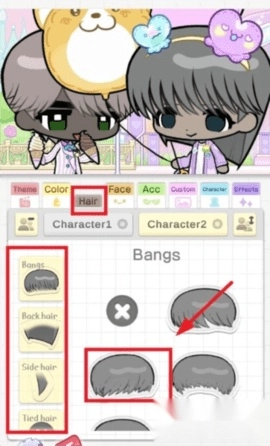 3、和上面一样,点击【hair】就能自由切换并改变角色的发型。