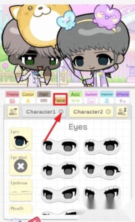 4、点击【face】选项,挑选角色的五官部件,还能自由调整脸部的形态进行捏脸。