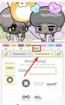 5、选择【acc】将眼镜与角色匹配。