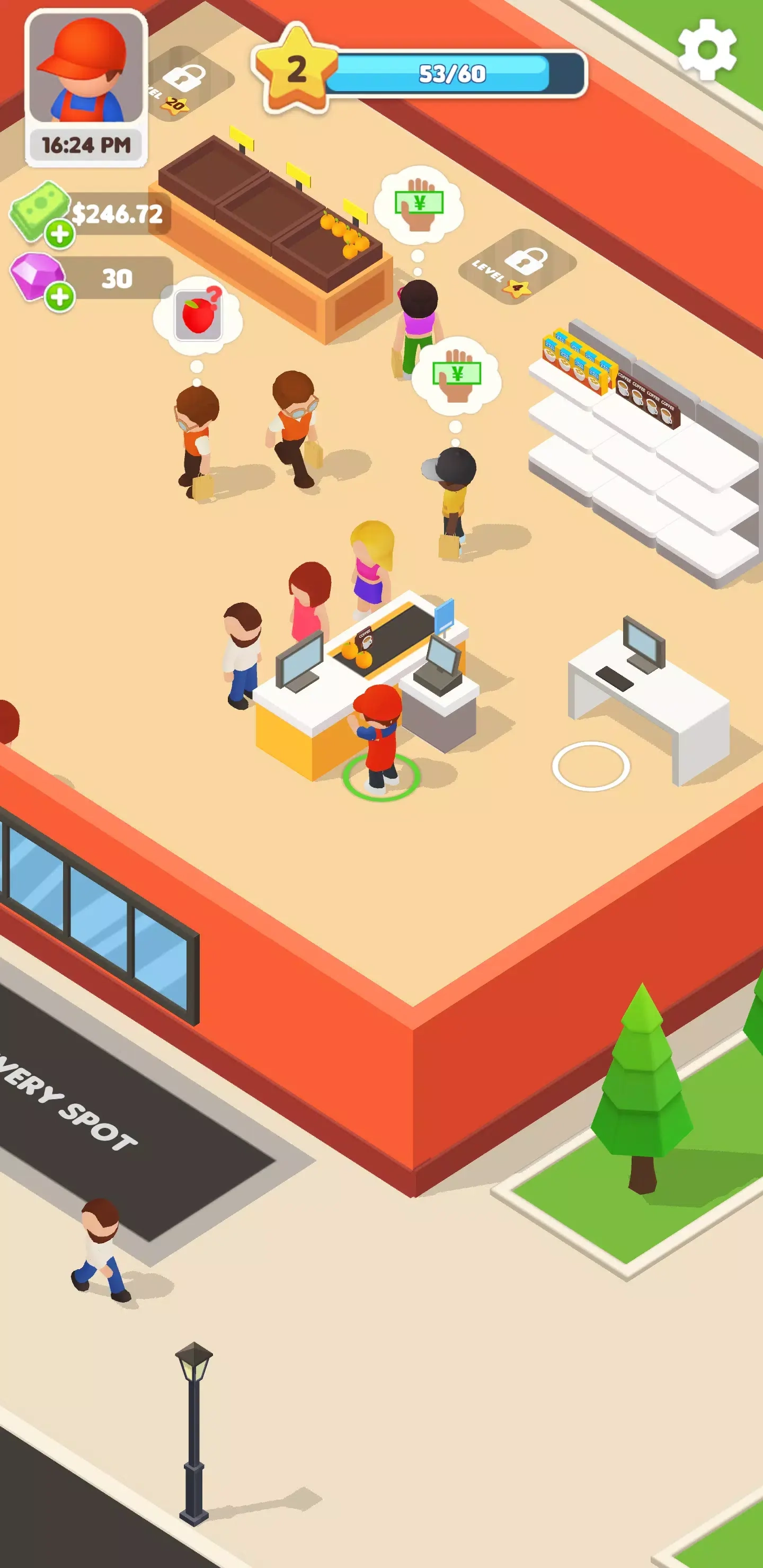3. 注意观察每位顾客头顶的气泡提示,当货架上他们所需的商品已售空时,要及时进行补充,以此减少销售方面的损失。