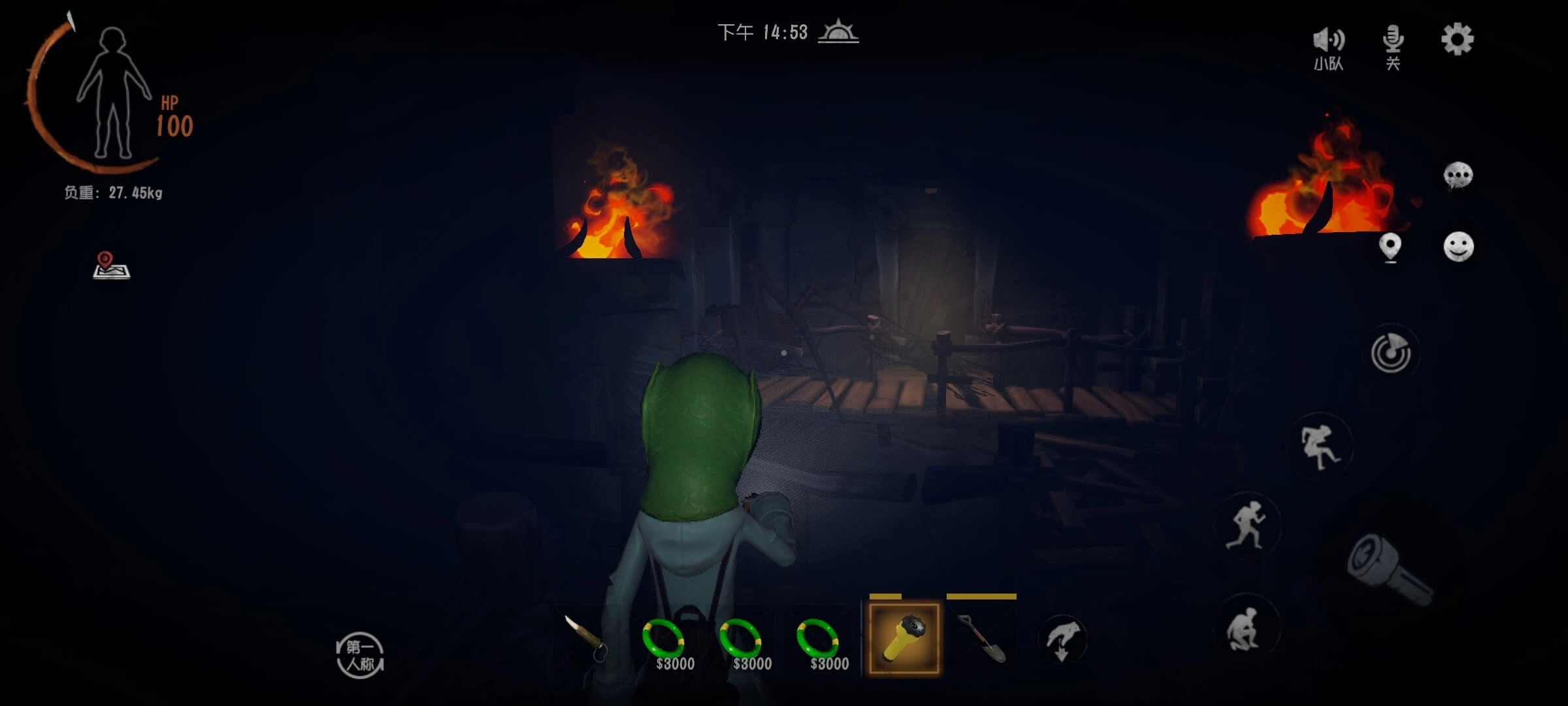 13.假人:会伪装成队友的样子,一旦靠近玩家就会紧追不舍,移动速度很快,甚至能追进汽车里。它的特征比较明显,通常手上没有拿任何物品,而且双手是垂直下垂的,用铁铲就能将其消灭。
