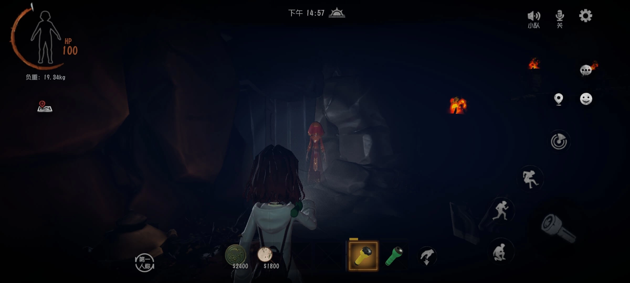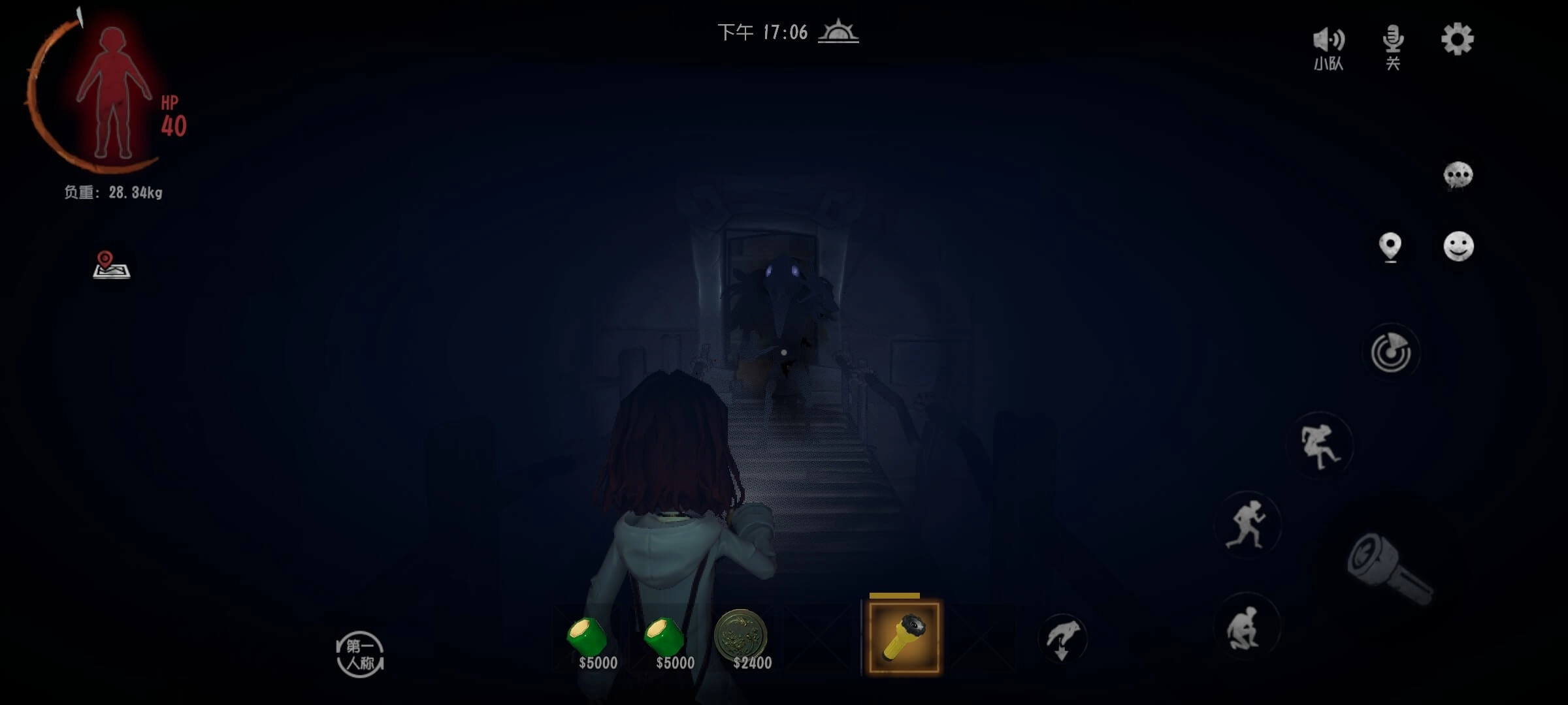 4.鬼新娘:现身时灯光会闪烁,还伴有笑声,她会通过闪现快速靠近玩家,一旦被她接触就会被带走。玩家可以通过加速移动来脱离她的影响范围,但无法将其消灭。