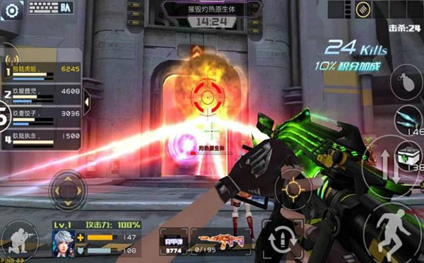 摧毁“灼热原生体”后,基地会空投一枚核融电池,它会顺着电磁轨道缓慢行进,这时怪物会从通道涌出来攻击电池。想要刷分的玩家要尽量把“金蜘蛛”都打掉,等“金蜘蛛”刷新出来时,先别急着击杀,让它走到电池附近,这样就能有足够的时间来消灭它。这时候需要一个队友帮忙助攻,建议助攻时给刷分的队员补上半个基数的子弹。其他队友则负责保护核融电池。