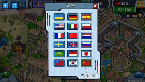 3、进入之后,在众多国旗里挑选中国国旗,挑选完成后,所有页面将会调整为中文页面。