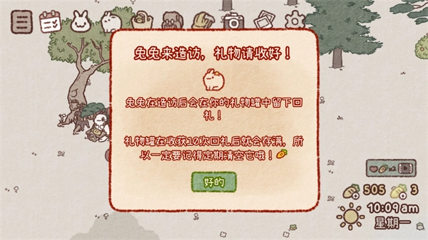 3、和前来拜访的兔兔建立起深厚的友谊,就能获得神秘的惊喜礼物。