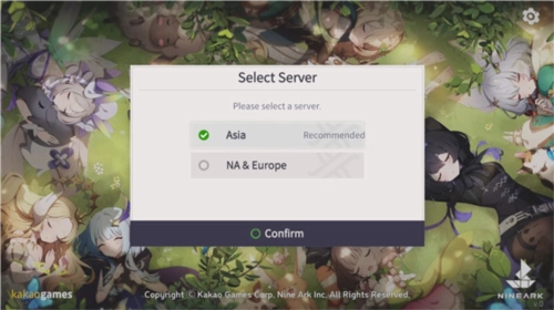 1、进入游戏后,首先需要进行服务器选择,界面上方是亚洲服务器(建议选择该区域),下方则是美洲服务器和欧洲服务器。