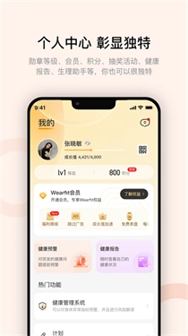 头像昵称、勋章等级、健康报告、生理助手、帮助与反馈、设备管理、个人偏好设置,你也能拥有独特的体验。