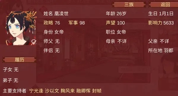 《女帝的日常》是一款自由度拉满的优质女尊模拟游戏。进入游戏,你将化身为执掌天下的女帝,开启专属于你的宫廷生涯。游戏拥有细腻精致的人物立绘与写实画风,搭配环环相扣、高潮迭起的剧情,能让你瞬间沉浸其中。你需要巧妙平衡朝堂各方势力,用心打理后宫事务,每一次决策都可能牵动剧情走向与最终结局——从任命官员处理政务、审议各类提案,到应对世家大族的明争暗斗,皆需谨慎考量。此外,你还能自由定制国号、年号等专属设定,打造独一无二的王朝印记。游戏中人际关系盘根错节,前朝的权谋博弈与后宫的风波诡谲紧密相连,每一段互动都可能影响结局走向。玩法更是丰富多元,养成心腹、布局策略发展、围观宫廷八卦吃瓜看戏……无论你偏爱权谋算计还是养成乐趣,都能在这里找到满足。它将带你踏上女帝的逆袭征途,在一次次决策中收获满满的成就感,度过一段精彩绝伦的游戏时光,现在就来开启属于你的女帝传奇吧!