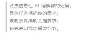 强烈安利这个看似简单却格外好用的“四步提问法”:背景+任务+要求+补充。给大家举个例子: