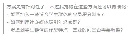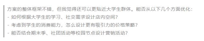 以这家咖啡店的开业方案为例,DeepSeek生成的首版方案未能充分凸显“大学生”这一核心目标客群。遇到这种情况,不必急于否定,不妨尝试通过以下方式继续沟通:
