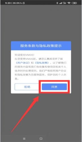 3、跳转服务条款与隐私政策提示界面,选择同意。