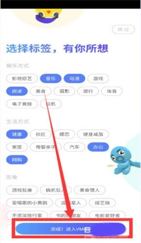 4、接着进入选择标签界面,有娱乐方式、生活方式和形象。