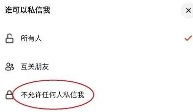 5、弹出窗口点击不允许任何人私信我即可。