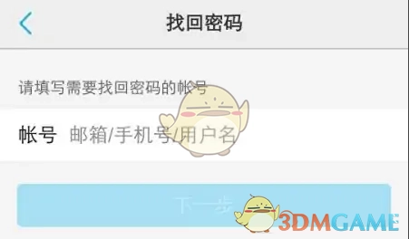 5、于“找回密码”页面,填入需找回密码的账号,接着点击“下一步”。