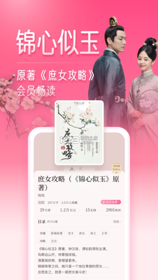 这款女性向阅读平台,以品质内容为核心定位,近期推出的新版本亮点十足:知名作者的全新作品在此首发,更有大量影视原著与网络文学可供免费阅读。平台整合了丰富的全网资源,构建起涵盖热门影视改编原作、经典网络创作、优质出版物等多元类别的庞大书库,覆盖豪门恩怨、校园故事、宫廷权谋、江湖侠义、快穿体验、纯爱叙事、悬疑推理等众多细分领域,收录千万册正版书籍。 在功能与设计上,它采用贴合女性审美的界面风格,配备全局护眼模式呵护阅读健康;创新设置角色人气打榜、声优定制化配音功能,并打造了独特的内容标签体系,帮助用户精准发现兴趣内容。作为一款便捷的追书工具,它支持各类题材小说的随时阅读,无论是男性向还是女性向作品都有覆盖,网络经典资源储备充足,分类体系清晰完善,方便用户快速筛选心仪作品并加入书架。此外,还提供离线阅读功能,用户可随时查看喜爱的热门小说,同时支持自定义界面设置,让阅读体验更舒适随心。