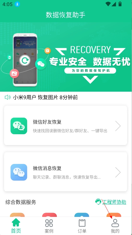 1、打开安装好的数据恢复助手,点击右下角我的。