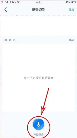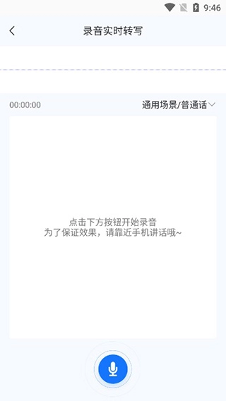 2. 当进入功能界面后,轻点下方的蓝色按钮,即可开展语音转写操作。