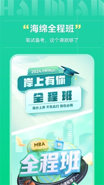 海绵全程班是专为学习时间有限、不知如何规划学习计划的MBA/MPA/MPAcc学生打造的定制化带学服务。依据你的学习状况,为你制定复习规划,老师通过直播与你一同学习,还提供督学服务、知识点串联讲解、在线做题、评测、每周模拟考试以及实时答疑等全方位服务,直至考前。