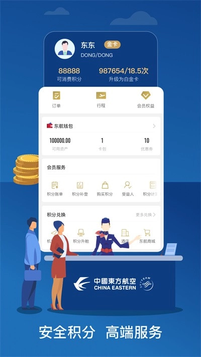 会员服务涵盖:为东方万里行会员提供注册与登录支持,同时具备账单查询、里程查询以及受益人查询等多项功能。