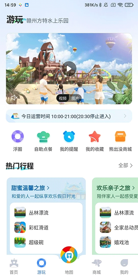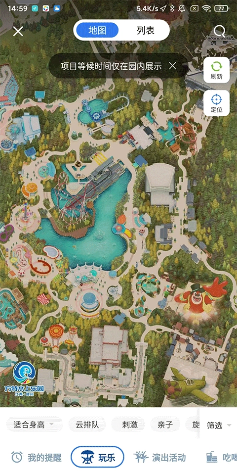 2、园区内提供地图导航、项目介绍、快速通行证、停车缴费、在线订餐等旅游服务功能。