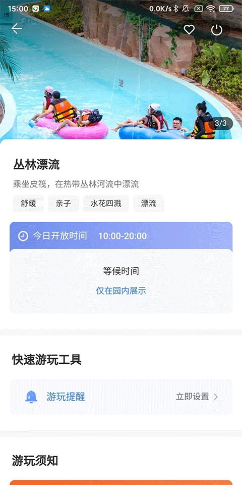 答:首先我们可以打开方特旅游APP,接着选择当前所在城市的娱乐设施查看,会发现界面上没有“预约”相关的选项,这说明方特旅游里的项目无需提前预约,用户到现场后只需排队就能游玩所有设施,另外该平台还会实时显示各项目的排队时长,方便大家合理安排游玩顺序。