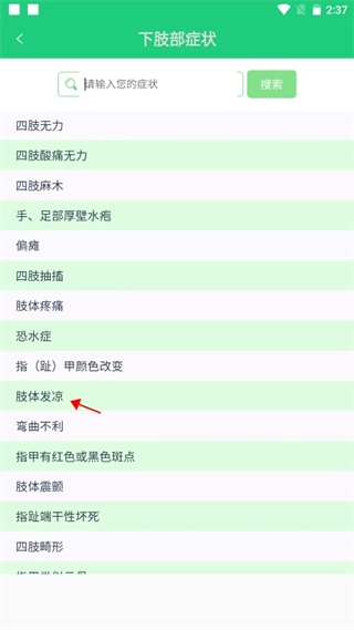 4、选择自身出现的身体不适症状,挑选其中一个症状后点击该症状。