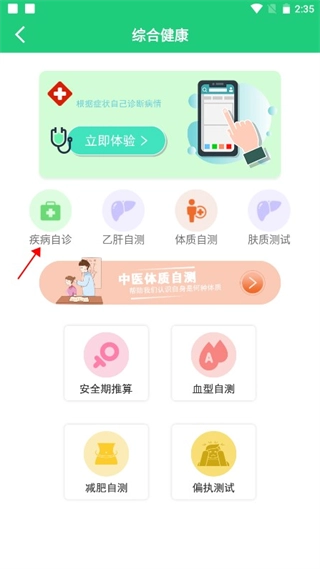 2、这里包含众多疾病检测项目,可点击左侧的“疾病自诊”选项。