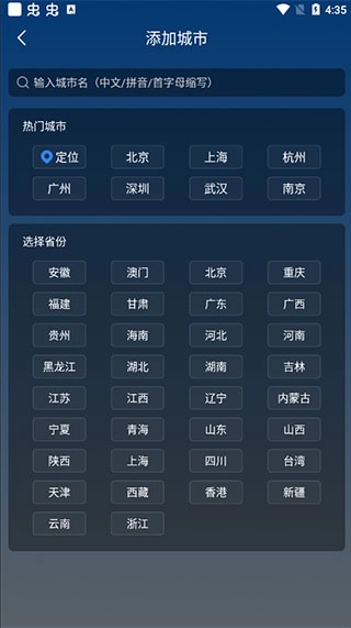 3、这时你可以通过搜索或定位直接选择城市;