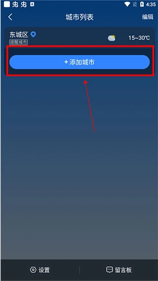 2、在城市列表中点击添加城市;