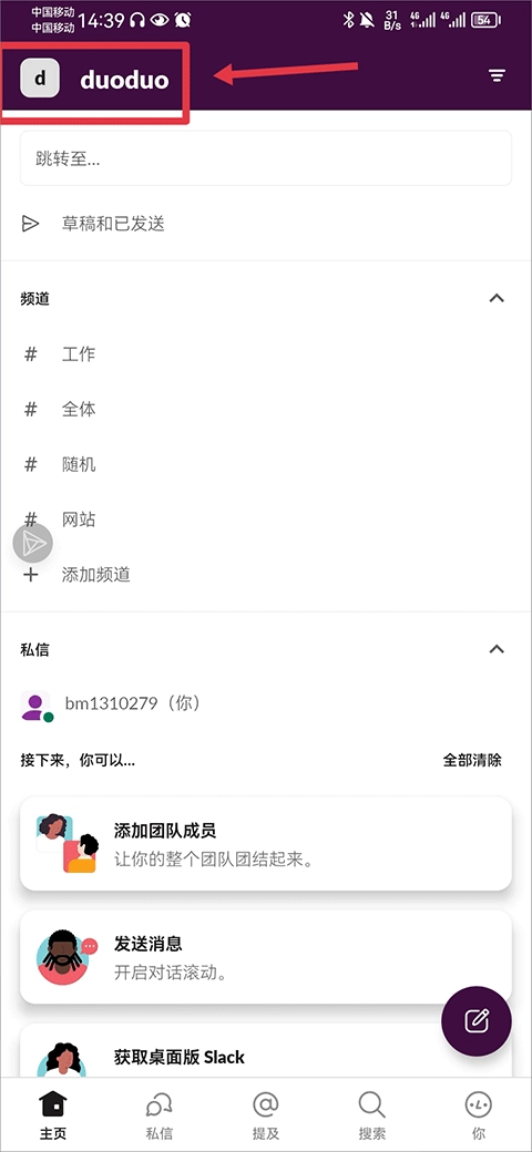1、在主页左上角点击团队名称,即可进入团队管理栏目。