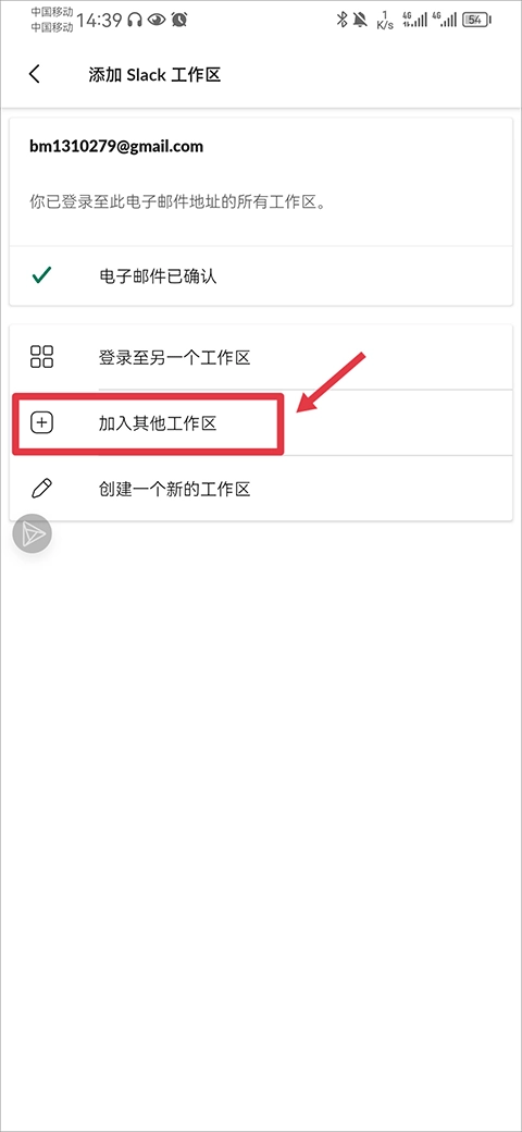 4、最后选择你要使用的电子邮件地址。若管理员向你发送了邀请,当你通过该电子邮件进入时,会看到邀请链接,点击此链接就能加入新的工作区。