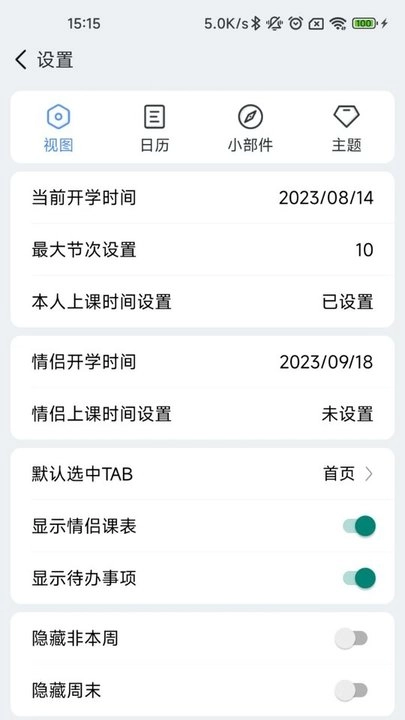 桌面小部件:日视图小部件可正常使用,周课表小部件不仅能展示普通课表,还支持情侣课表功能。