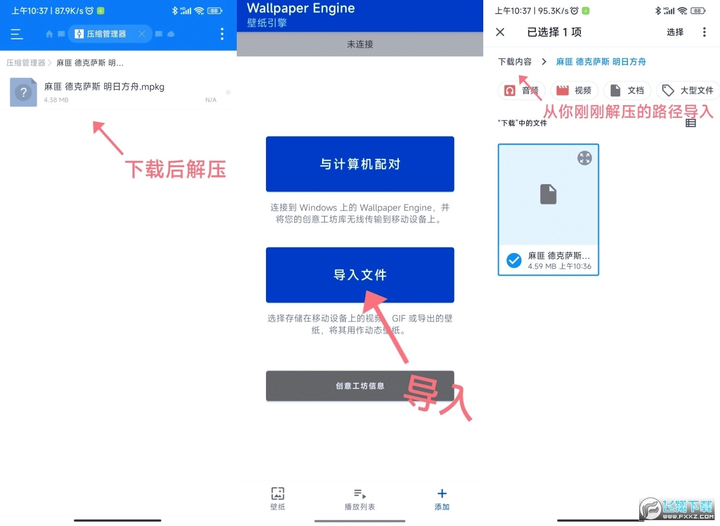 2. 接着打开壁纸引擎,导入壁纸压缩包中后缀为mpkg的文件。