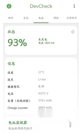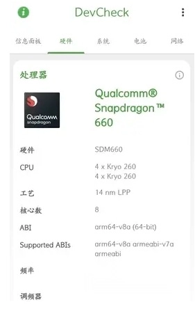 - 开启DevCheck ,进入首页界面,此时会呈现手机信息的概览内容。