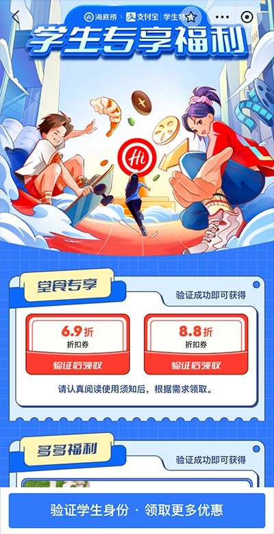1、第一步,用户需打开支付宝,在搜索栏输入“海底捞”小程序,随后点击进入高校学生验证专属入口。