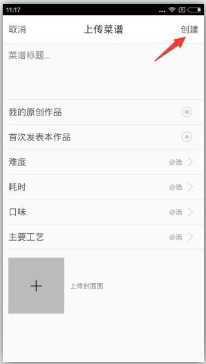 2、填写好做菜信息,点击右上角“创建”即可