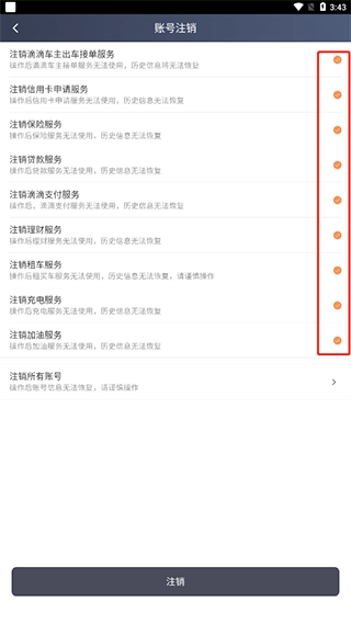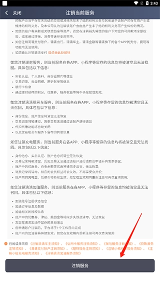 6、最后勾选同意相关协议,点击“注销服务”,即可完成滴滴车主账号的注销。
