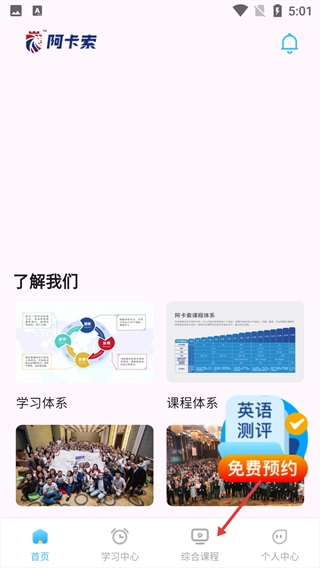1、点击底部“综合课程”选项,进入综合课程页面。
