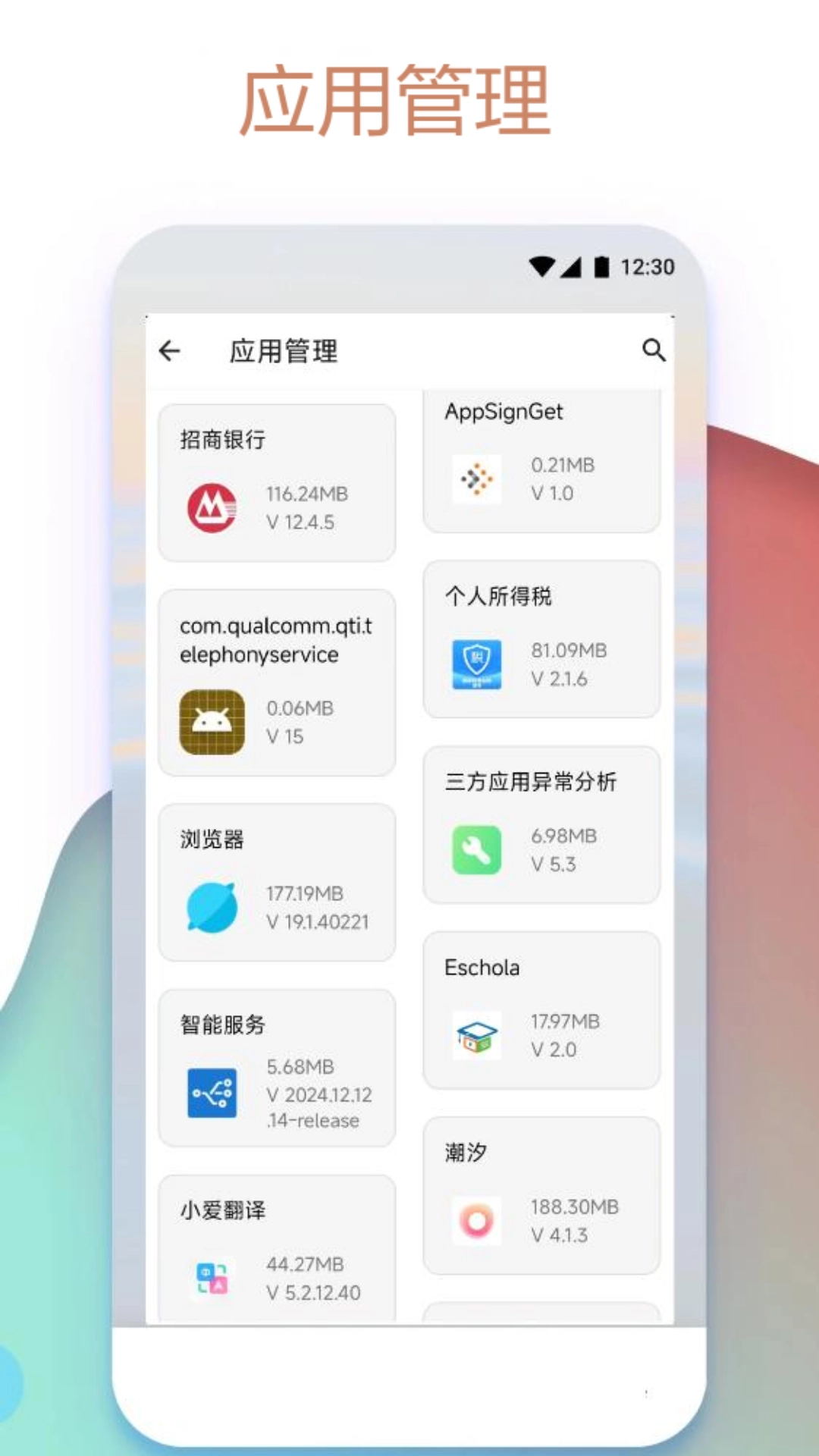 应用会自动列出所有已安装的应用程序,涵盖系统自带应用与第三方应用,用户能够依据条件进行筛选查找。