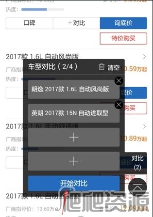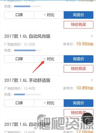 选好对应的品牌车型后,接着挑选该车型的不同版本来做对比。