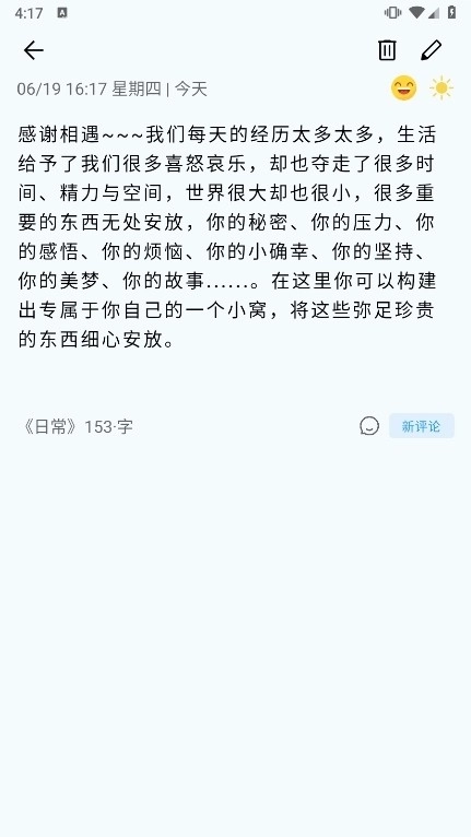 想要记录每天的天气和心情状态,可以在编辑页面找到对应的天气或心情图标并点击选择,这样就能直观地展示当天的情况了。