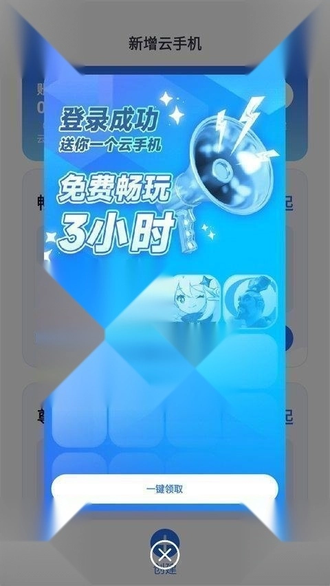 2、完成登录后,点击【一键领取】,就能免费领取180分钟的云手机体验时长。要是您试用后觉得满意,再考虑是否需要后续充值。