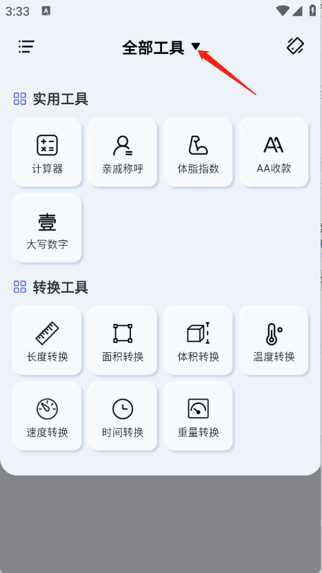 2、进入首页后,点击全部工具右侧的箭头,就能看到更多工具。